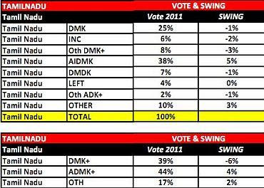 The polls indicate that the Dravida Munnetra Kazhagam and its allies will lose a mammoth six per cent of its vote share (as compared to the last assembly election) while the AIADMK and its allies stands stands to gain over four per cent of the vote share this year.